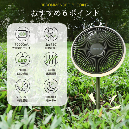 hagoogi ハゴオギの扇風機は、充電式バッテリーを搭載しており、フル充電には約4時間かかります。